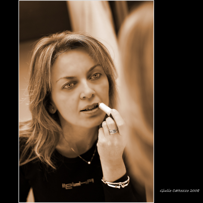 In particolare, qui mi dai modo di riflettere sulla collocazione errata dei capelli, che nelle mie intenzioni volevano servire a dare maggiore profondità allo scatto... mi pare di capire che, invece, diano solo disturbo e che, al massimo, andavano gestiti meglio...