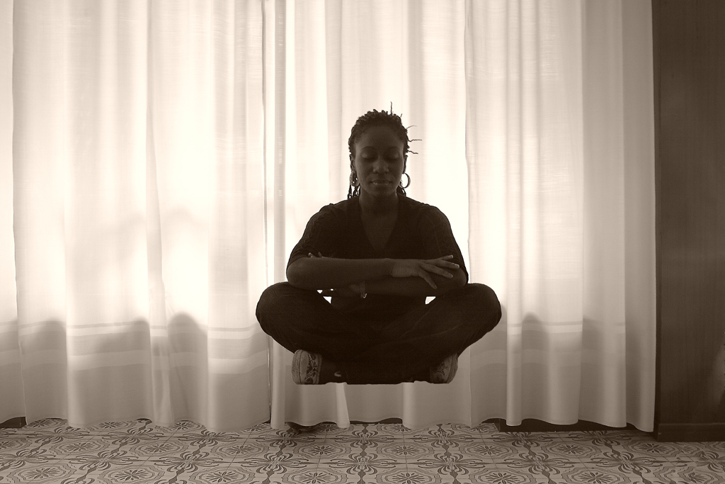 Bella l'idea della tenda dietro che aiuta a vedere il soggetto fluttuante.