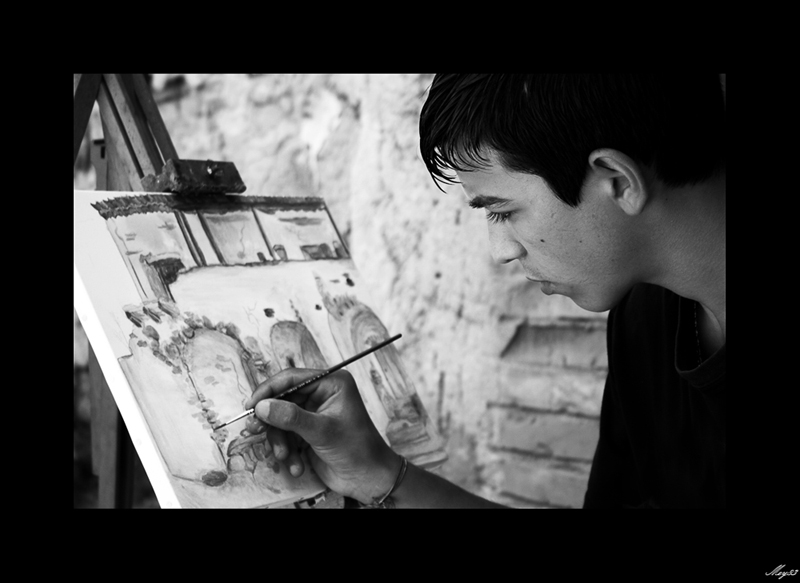 non condivido la scelta del bordo nero che va a fondersi con il pittore, perchè la considero dispersiva, mentre l'occhio dovrebbe soffermarsi solo sul soggetto  _________________ Le immagini fotografiche sono testimonianza di una biografia e di una storia in corso.
