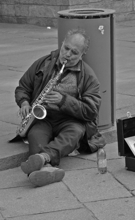 | mi piace molto come hai ritoccato la foto certo il massimo era allargare l'inquadratura anche alla cassetta dell'elemosina con la scritta " la vita è una ruota" .... ma purtroppo la strada era "disturbata" da un bel po di gente... e per questo ho colto questo attimo