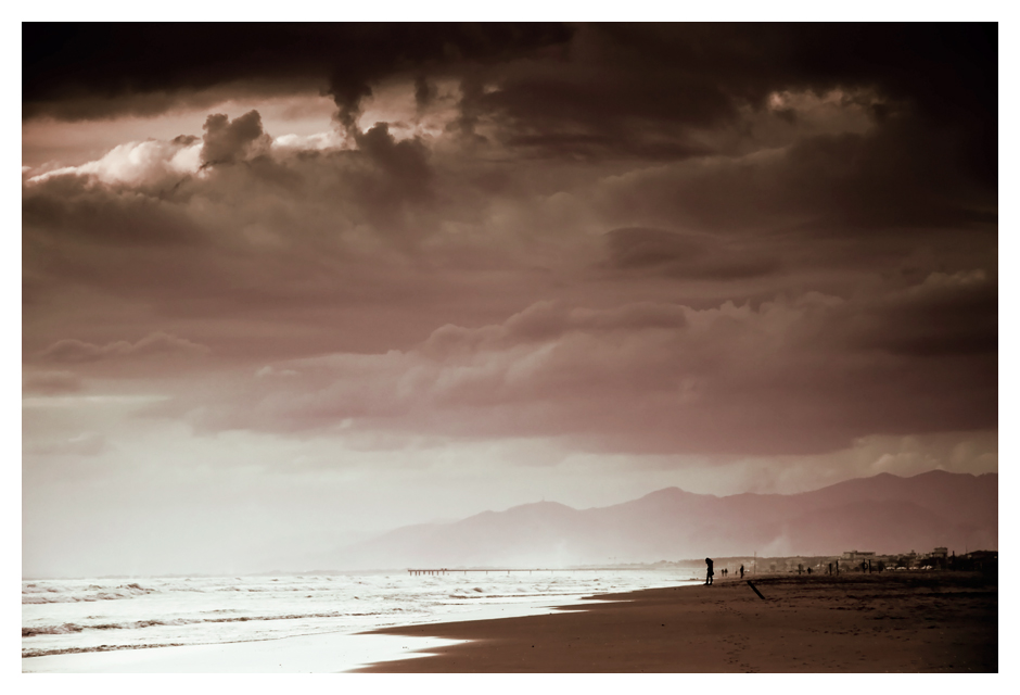 ......presenza umana un po confusa con lo sfondo..... particolari le tonalità ottenute,più da viraggio che da registrazione fedele della scena..... buona la resa delle nuvole, orizzonte leggermente stortino....