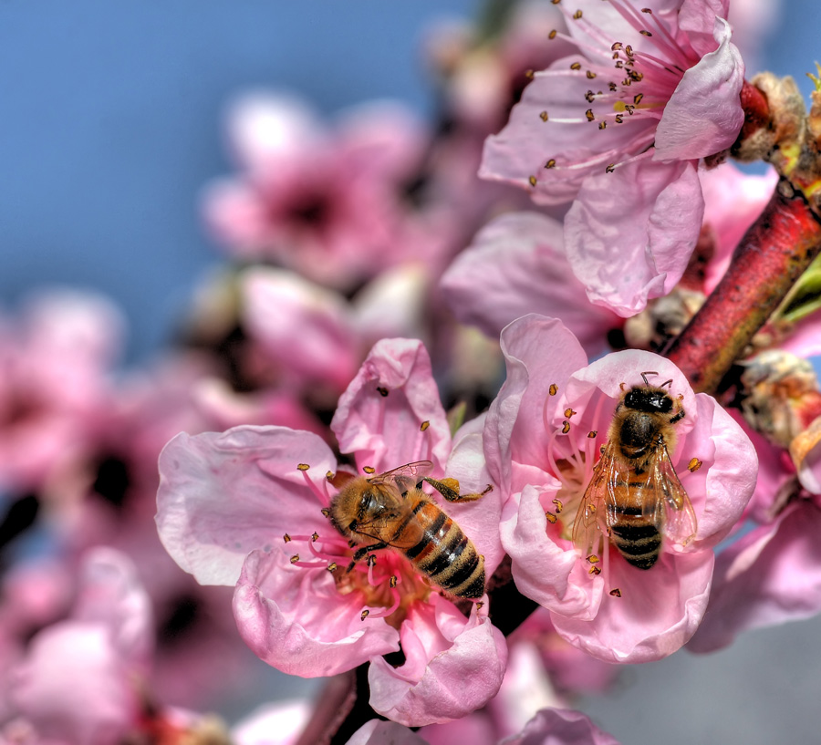 Due api su fiori di pesco