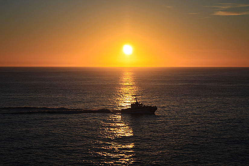 In quel momento mi interessava simboleggiare l'inizio di un nuovo giorno,col sole che comincia a salire,con l'entrata del peschereccio nel nuovo giorno.......
