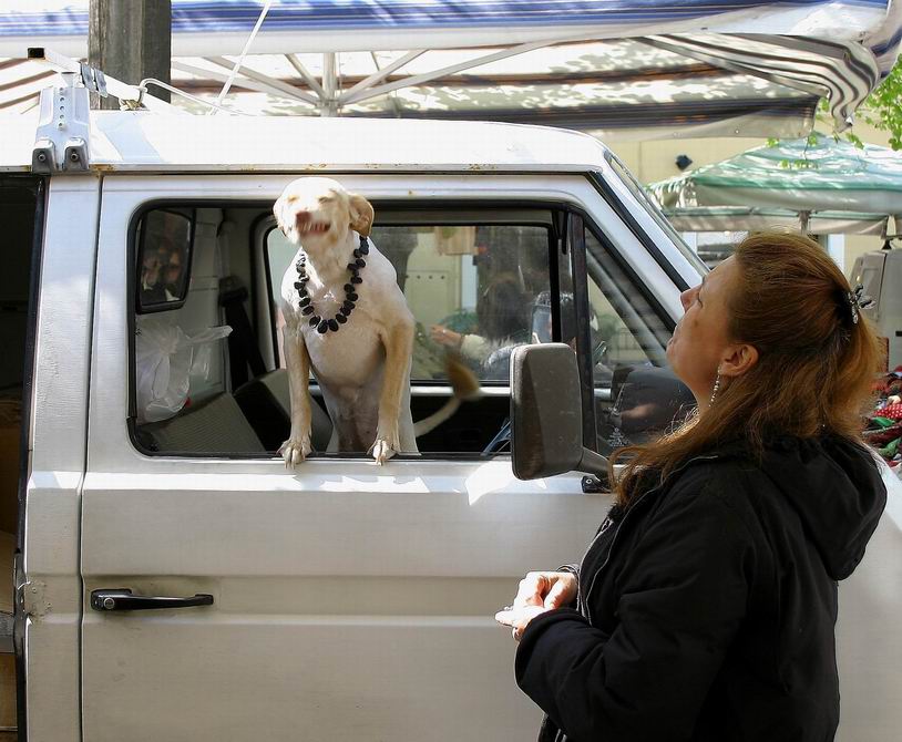 Non male l'accoppiamento cane-uomo, particolare anche l'espressione colta.