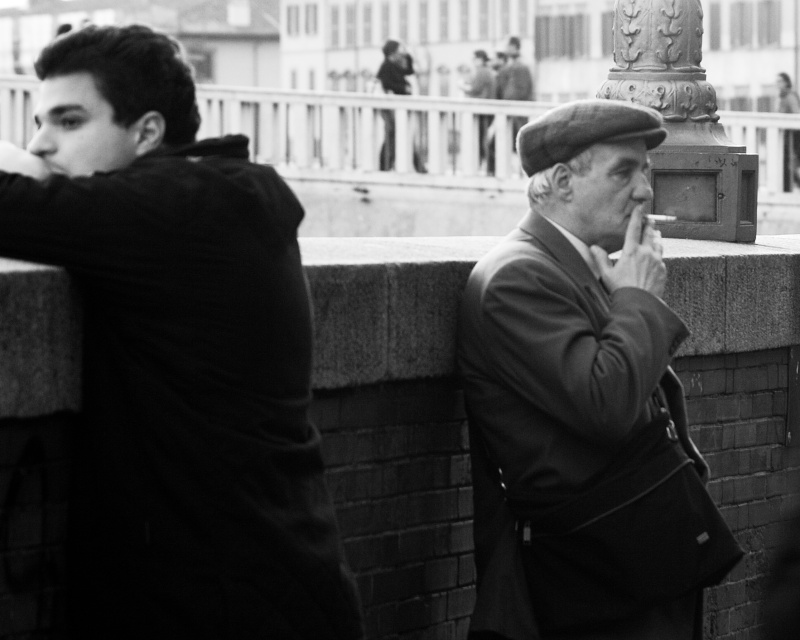Purtroppo il fuoco è caduto sul palo dietro al signore che fuma e il ragazzo a sx è anche tagliato.