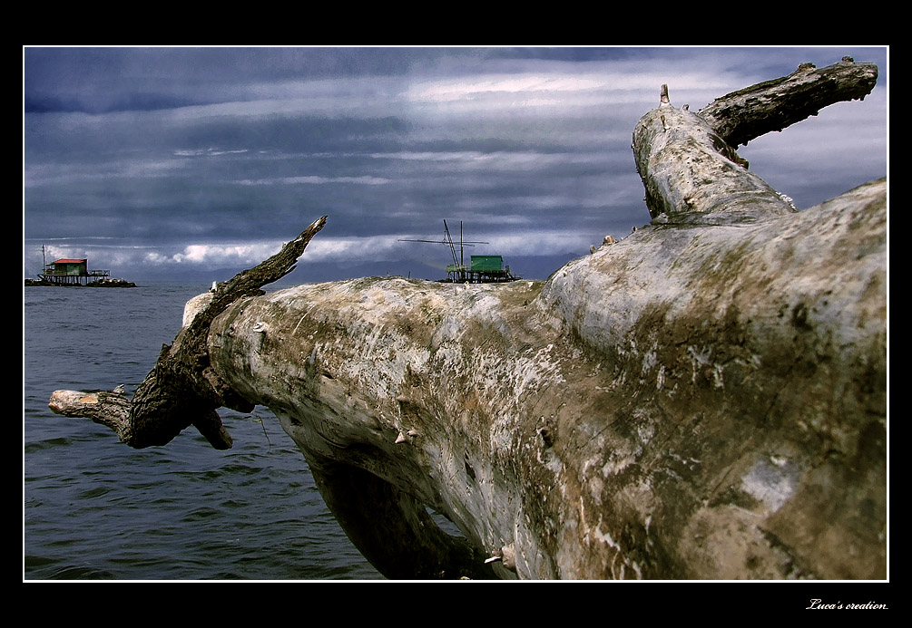 La composizione è davvero molto originale, con questo immenso tronco che sembra indicare proprio la direzione verso cui volgere lo sguardo, avrei lasciato un po' più spazio a sinistra per dare più aria alla scena. Sembra quasi che il retone di destra sia un modellino appoggiato sul tronco...molto carino!