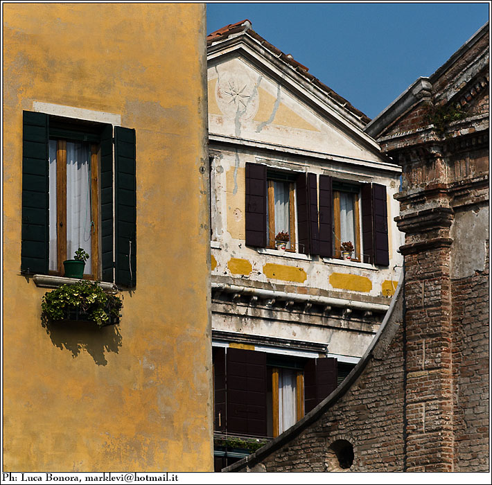 Molto attento alla perpendicolarità delle linee cadenti. Bravo nella scelta dell'inquadratura, in modo che la costruzione a dx in mattoncini si inserisca nel palazzo a punta. Ottima la composizione. Bravo Luca