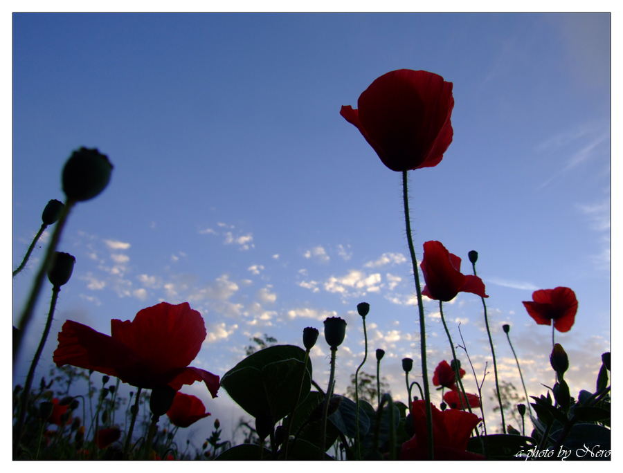 Bella immagine, e per di più anche fortunato per avere avuto proprio quel cielo, che fa da magnifico sfondo ai papaveri.
