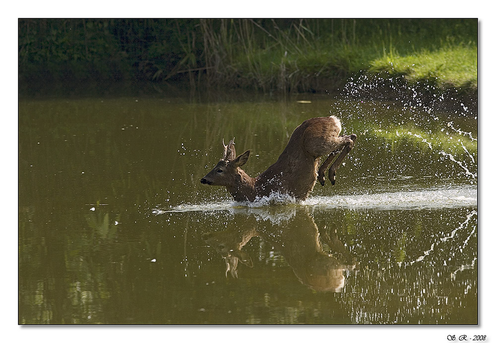bellissimo scatto che ti invidio tantissimo,già è difficilissimo beccare un capriolo maschio in corsa,beccarlo poi mentre sta saltando nell'acqua è poi praticamente impossibile,se poi ci metti che la foto è molto nitida e ben riuscita siamo proprio su livelli altissimi.
