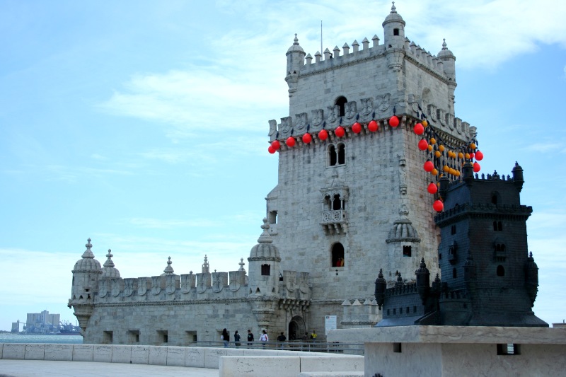 Questa è la torre di Belém a Lisbona, i palloni rossi sono delle schifezze se noti ci sono anche quelli verdi insieme fanno i colori del Portogallo credo che siano stati messi per la festa dell'Ascensione. |