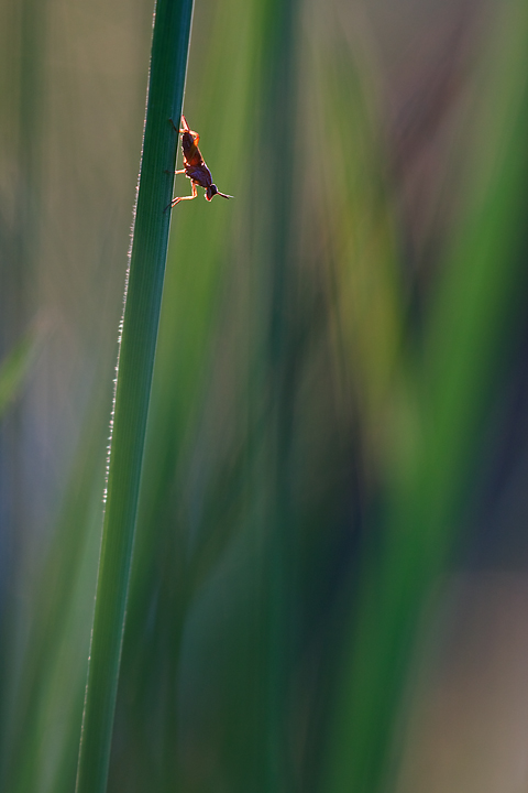 Ottimo controluce sia sull'insetto che sul filo d'erba. La vedo molto bella anche con un pizzico di ottimismo che non fa mai male. Mi chiedo a serva il tuo nickname sotto alle foto, se fosse possibile potresti anche toglierlo. Ok! Ok!