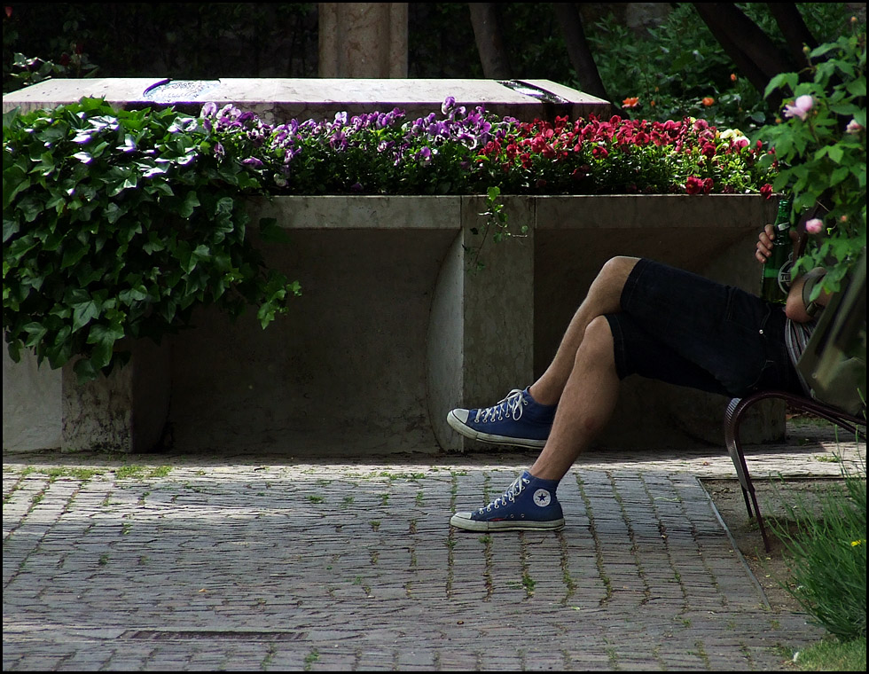 scatto originale, simpatico, divertente se.... avessi eliminato la parte dx ... sino alla gamba della sedia cioè sin dove finisce il marciapiede ....