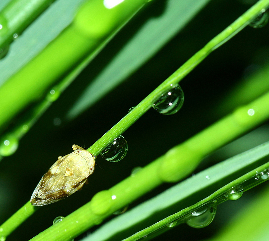 quoto, mi piace questo mondo macro fatto di goccioline, fili d'erba e animaletto.