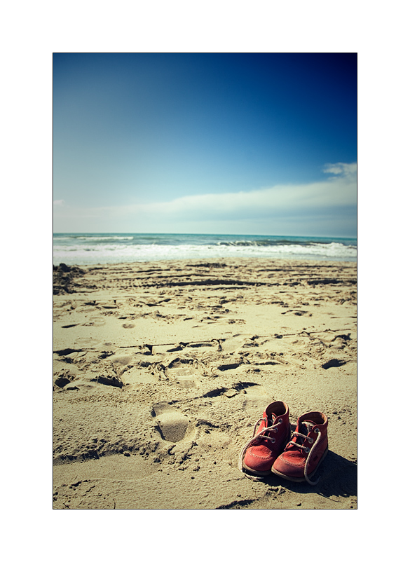 l'idea è già strata sfruttata ma è comunque carina! Molto piacevole per i colori: quelle scarpe rosse risaltano molto bene e spiccano in contrasto col blu del cielo. Avrei personalmente sistemato l'orizzonte storto e curvo
