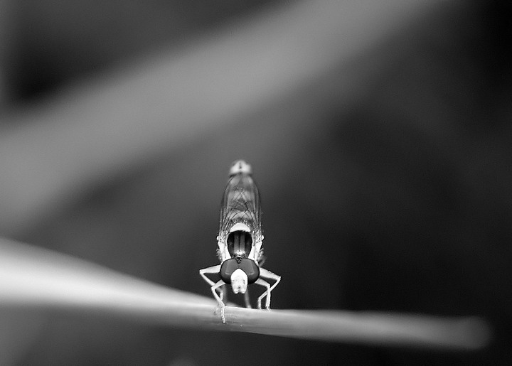 questo b/n mi piace molto. e l animaletto ancora di piu...con quella posizione delle zampette sembra veramente essere teso e pronto per una partenza di una gara...sembra anche indossare un casco d aviatore...davvero un bello scatto. trovo ben gestita anche la ridotta pdc che però è ben centrata sul protagonista principale.