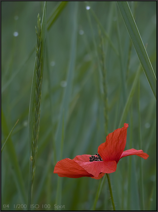 Molto bello l'irrompere del colore rosso che ha scaldato la tonalità leggermente fredda dell'insieme. Ottima anche la composizione che vede il papavero defilato pur rimanendo protagonista assoluto della scena.
