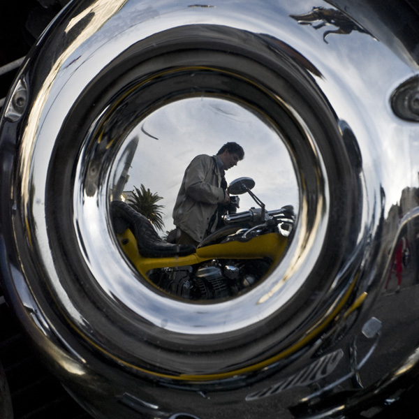 ottima l'idea di fotografarsi attraverso delle cromature, forse un tantino sottoesposta ma per il resto e ok. Complimenti Andrea, un caro saluto