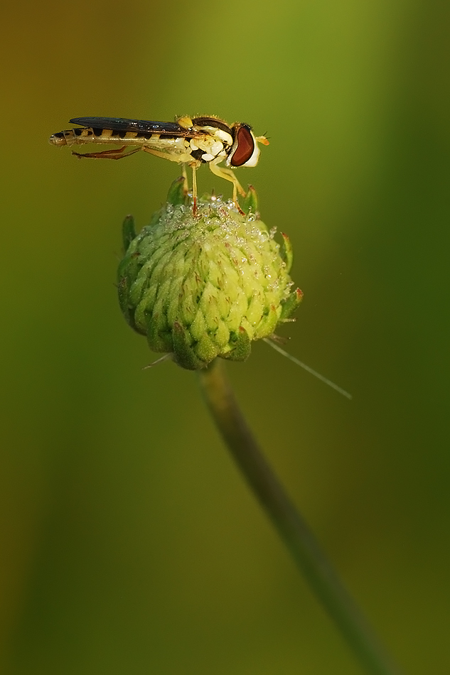 una bella foto,ottima la composizione, molto bello pure lo sfondo,mi piace l'insetto con questo gioco di luce.