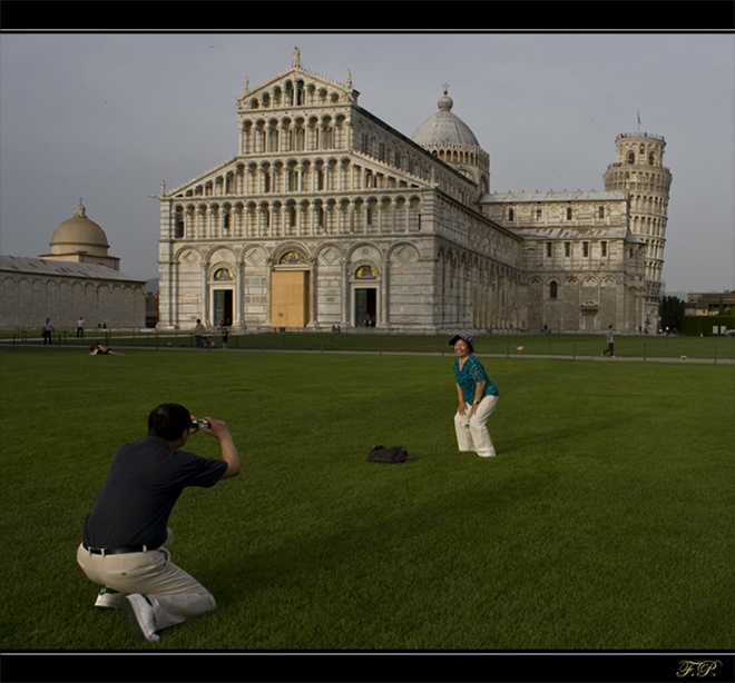 foto nella foto.....bella idea......e cosi il giaponese si porto' la torre di pisa a casa....