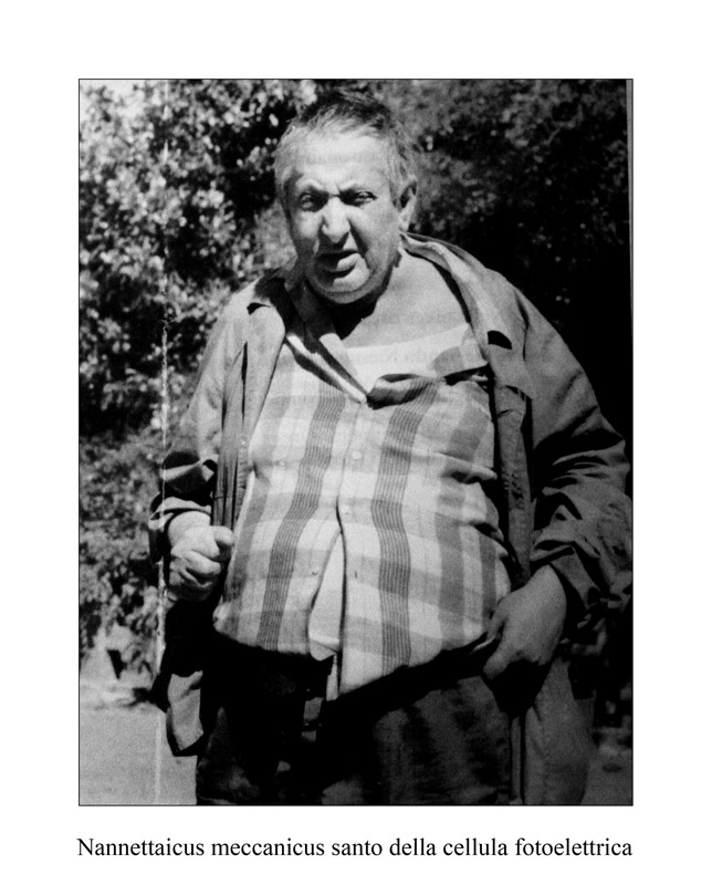 Altrove N.O.F è “Nucleare Orientale Francese” ancora due autodefinizioni “Nannetti Fernando bocca stretta naso a y fusione lancio 1939” Nannettaicus meccanicus santo della cellula fotoelettrica” con le quali il precedente ritratto fisognomico così perentorio, assume valenze alchemico futuribili.