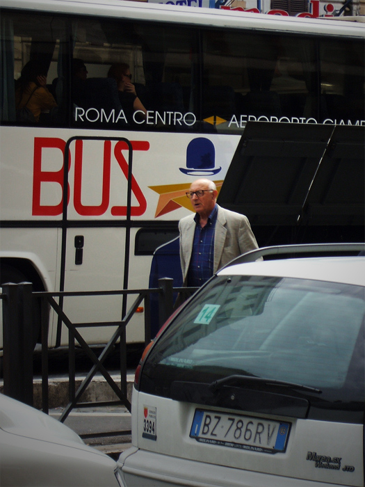 Purtroppo di scatti ne ho fatti più di uno ma beccare le persone in movimento sotto al cappello e con una prospettiva accettabile non è affatto facile... ne ho buttati tanti... ne ho uno anche di una signora che però era ferma ma non provando abbastanza soddisfazione sono tornato lì il giorno dopo e ho beccato questo signore Very Happy (tra l'altro un minuto prima che passase non c'erano neanche quei due taxi... Mah )