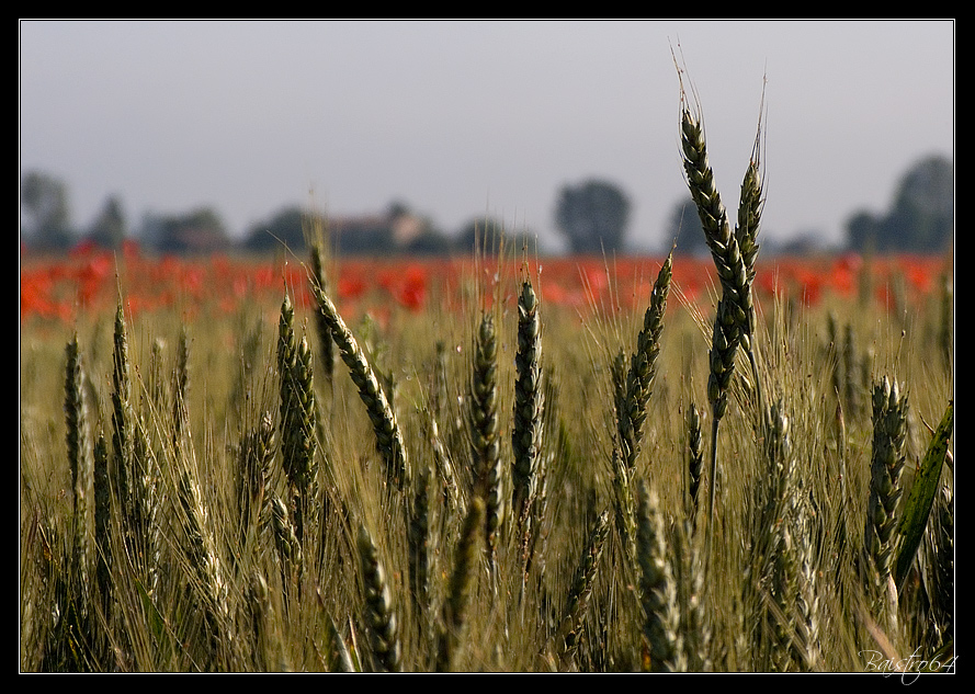 ..particolare la contrapposizione della dura linearità delle spighe rispetto allo sfocato morbido accennato dello sfondo..sicuramente quel rosso fa da stacco portante per la lettura non piatta della foto.. Smile