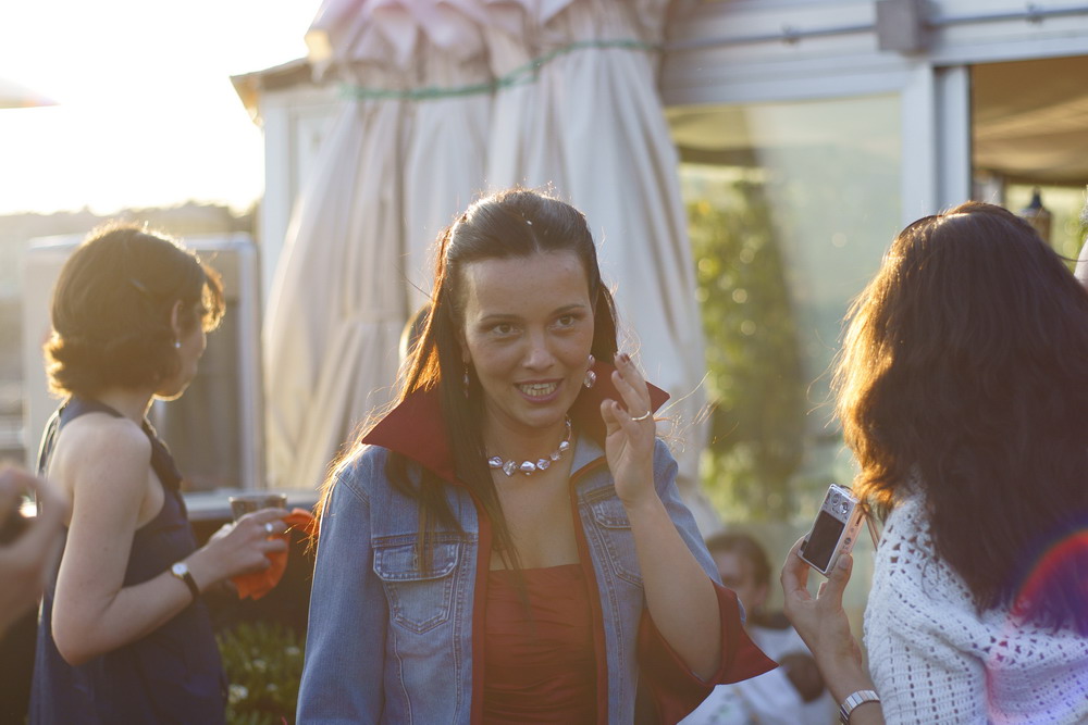 il difetto piu evidente è la piattezza della foto...manca di contrasto...poi c e un leggero riflesso nell angolo inferiore sinistro...e la composizione a mio avviso un po casuale...con un pezzo di mano che spunta a sinistra...la ragazza di spalle sulla destra che è tagliata a metà...