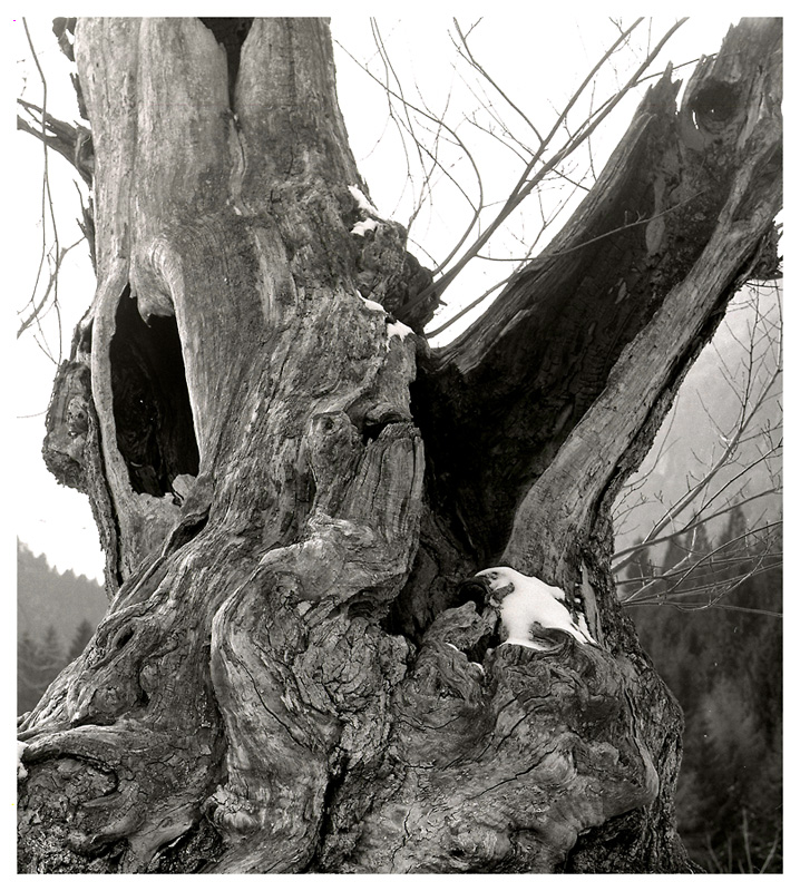 un bianco e nero molto gradevole, sembra paradossale confronto alla vecchiaia dell'albero, ma pare urli.
