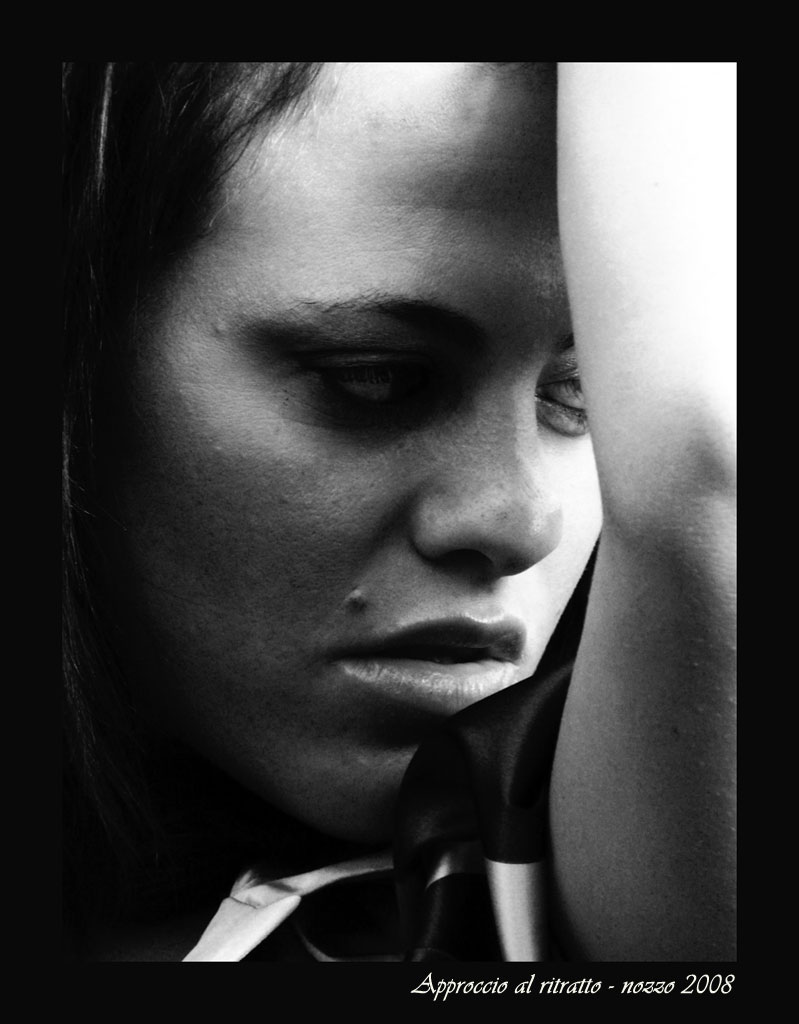 troppo invadente e non funzionale alla composizione la presenza del braccio. troppo poco in evidenza gli occhi, che in questi scatti giocano un grande ruolo. poi, è un pò troppo "dermatologica"...perdonami, se uso questo termine. intendo dire hai messo in risalto tutte le sue imperfezioni della pelle: complici possono essere la distanza di ripresa eccessivamente ridotta e l'utilizzo di una focale abbastanza corta.