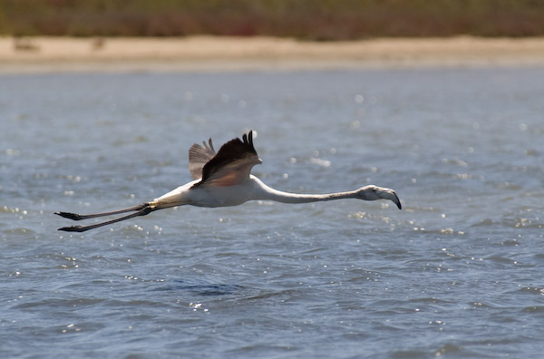 appostato nel bel mezzo della laguna un fenicottero in volo passa davanti al mio obbiettivo.