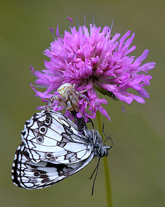 Mi spiace tanto per la Melanargia finita nelle grinfie del ragnetto... Triste ma lo scatto e l'attimo colto sono fantastici! Stupendi i colori! Ok!