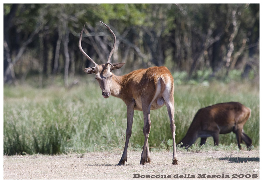 Un cervo con le corna cosi strampalate mi fa pensare a qualche problema genetico ...un po' troppo morbida...anzi direi che la messa a fuoco è sulla coda dell'animale.