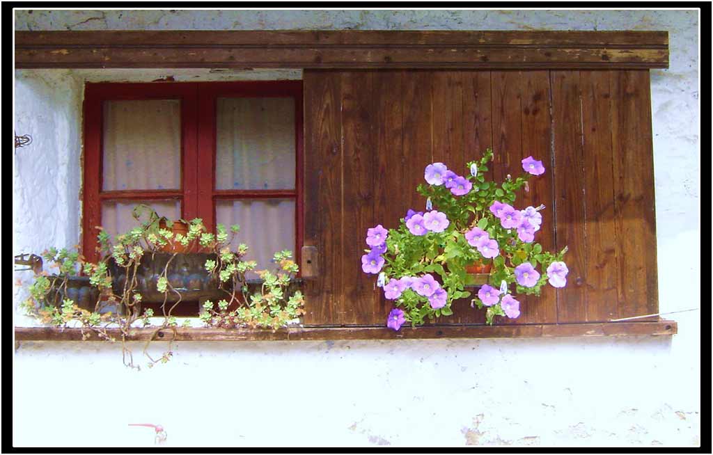 secondo me il soggetto non è male, ci sono molti colori che possono colpire l'osservatore, purtroppo in questa foto non sono resi al meglio, il muro bianco sotto la finestra è decisamente bruciato tantoda far quasi scomparire il rubinetto dell'acqua a sinistra mentre i fiori viola sembrano disegnati sulla finestra tanto poco spiccano dallo sfondo.