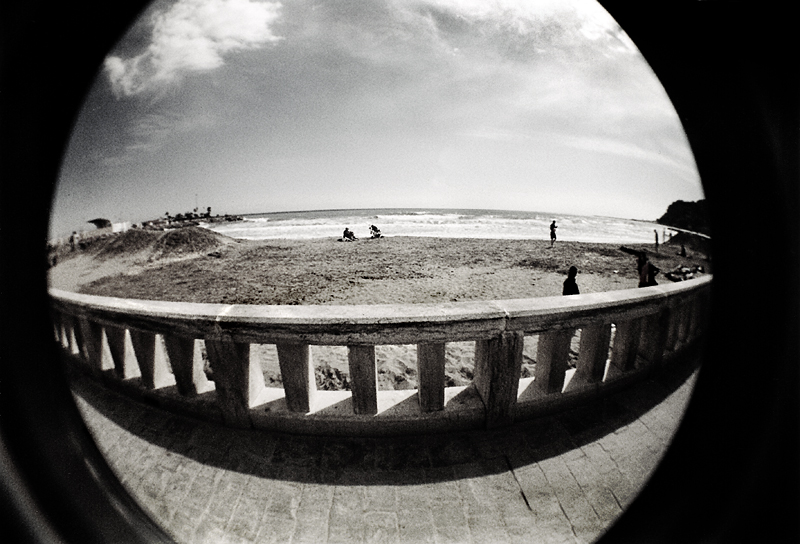 Di questa foto con una visione a occhio di pesce mi piace molto la parte bassa dove il muretto con le colonnine, l'ombra e sotto ancora la luce sembrano creare la forma di una "bocca" che sorride o digrigna i denti. Ok! Wink