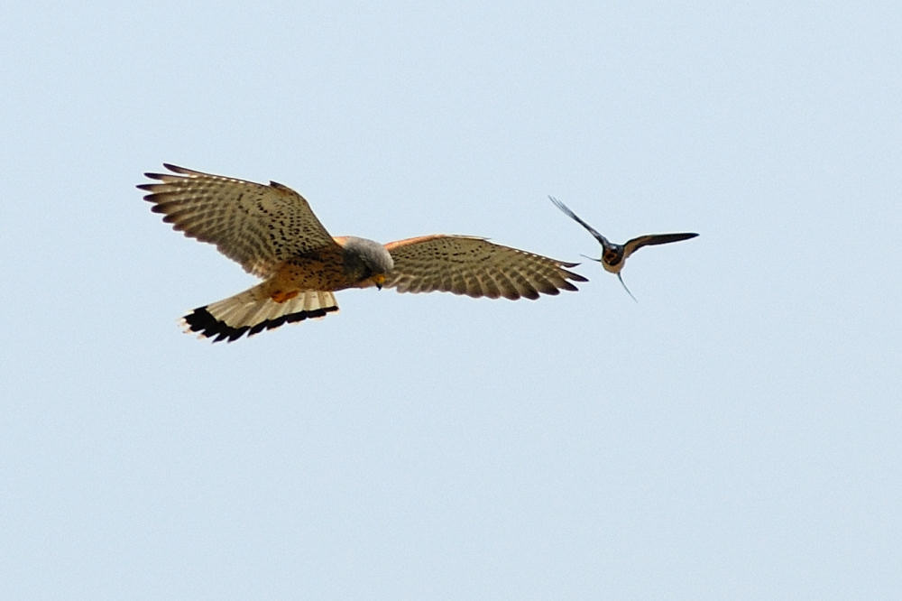 | Avete mai visto un rondine attaccare un gheppio? Alla fine l'ha cacciato via.