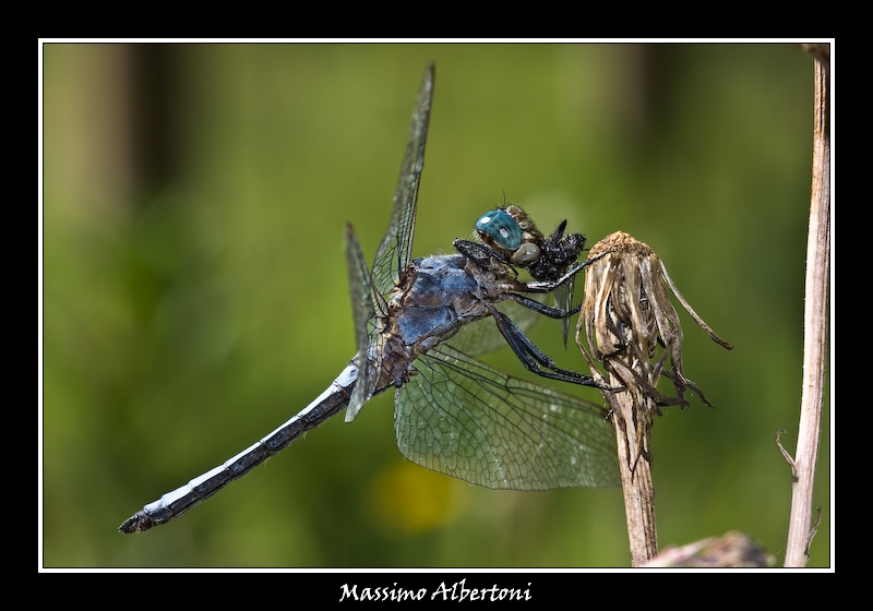 Sincero sincero? Avrei tagliato il rametto a destra, che nell'economia dell'immagine dice poco o nulla, a costo di avere un taglio quasi quadrato, e avrei clonato quella macchia sfocata in basso. La libellula e la sua preda sono nitidissime e ben esposte.  _________________ "L'unico rapporto 1:1 che conosco è: 1 possibilità per il soggetto di scappare, 1 probabilità per me di riuscire a fotografarlo" (Ribes)