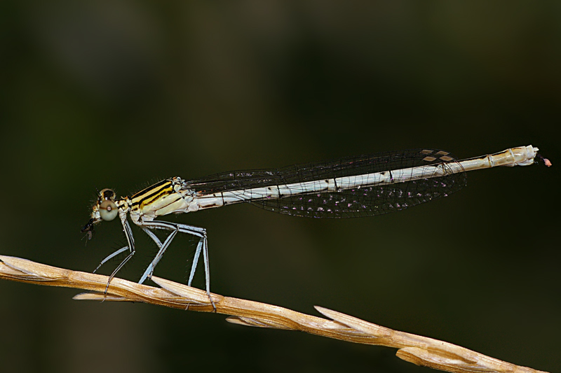 l'occhio è perfettamente a fuoco, come ho ribadito più volte l'occhio delle libellule in generale ma delle damigelle in modo particolare presenta dei pigmenti che sfumano verso l'esterno creando l'illusione che non sia a fuoco, mentre invece lo è.