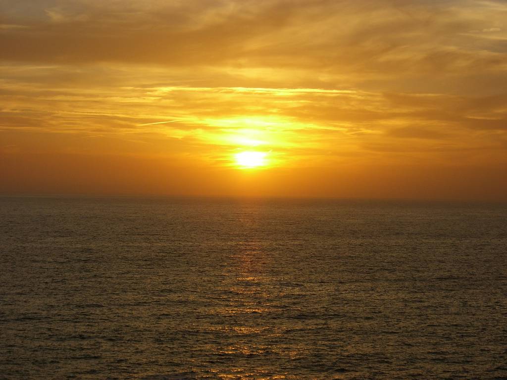 ....beh, direi che più che altro trasmette pace,calma e serenità..... sensazione trasmessa tanto dal cielo infuocato dal bel tramonto quanto dal mare decisamente calmo del suo dolce incresparsi...... vista l'attenta centratura del soggetto,sole,avrei optato per un taglio quadrato che avrebbe esasperato il concetto trasmesso..... ovviamente avrei reso orizzontale l'orizzonte prima di chiudere l'immagine entro i bordi dell'immagine. Ottima la resa dei toni e la gestione della luce.
