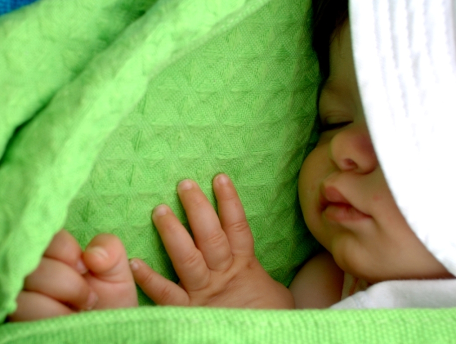 La foto non è perfetta da un punto di vista tecnico (ad esempio la coperta bruciata), ma hai colto il bambino in una posa talmente tenera che tutto il resto riesce a passare in secondo piano!