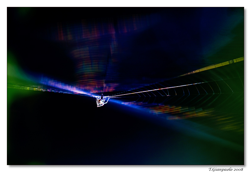 Il ragno è un po' bruciato, ma si capisce bene che è l'effetto di luce la vera particolarità di questa foto.