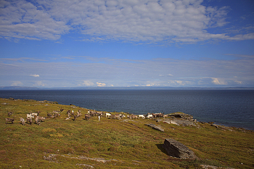 Se è ancora Norvegia, è molto diversa dalle zone che ho conosciuto io (non oltre 200 km a nord di Bergen). L'immagine restituisce molto bene un'atmosfera che grida 'NORD' attraverso il colore dell'erba, dell'acqua che non invita certo a tuffarsi, e di quel cielo così particolare. Si vede che la nuova macchina ti era ancora poco familiare, la nitidezza non è al top e le renne si intuiscono tali solo perché sapevo dove eri stato (e poi dalla lettura del titolo... che però ho letto dopo ...) se no potevano sembrare benissimo mucche, salvo quanche fantasma di corna ramificate che si intuiscono più che vedere. Una passeggiata per avvicinarsi, o il tele ben più lungo della tua prosumer precedente che, penso, ti eri certo portato dietro, forse sarebbero stati utili. Ma allora era un'altra foto, e forse l'hai fatta e ce la mostrerai in seguito.