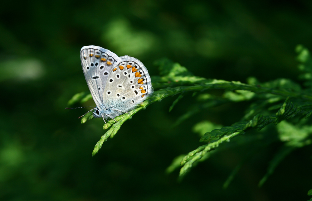 bella, perfetta la luce che attraversa le foglie ed arriva a illuminare la farfalla, sai che mi piace di più quela sotto però. Bravo Alex