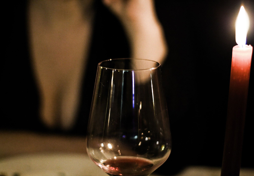 Mi piace l'idea che c'è alla base, un po' meno, però, l'inquadratura nel primo piano, con la candela che è davvero troppo sul lato destro, e il bicchiere con quel po' di vino rosso un po' troppo tagliato nella parte bassa..
