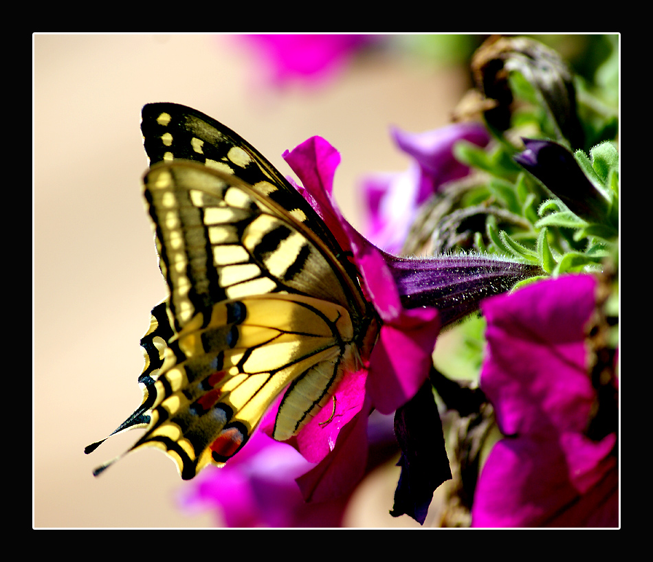 Ciao Luciano, il mio primo Macaone, me lo sono visto spuntare davanti aggll'occhi al'improvviso, mentre tornavo di fare la spesa, quindi poso le borse dentro prendo la macchina fotografica e comincio a scattare come un pazzo, perche naturalmente non stava ferma per più di due tre secondi per fiore, lo so che si devono fare di mattina presto ma essendo che la mattina vado a lavoro non ho questo tempo lo dovrei fare il sabbato e la domenica, ma purtroppo non sempre e possibbile, cmq continuero iperterrito a cacciare, e nello stesso tempo vediamo se verso dnovembre o dicembre posso acquistareun'ottica macro come si deve.