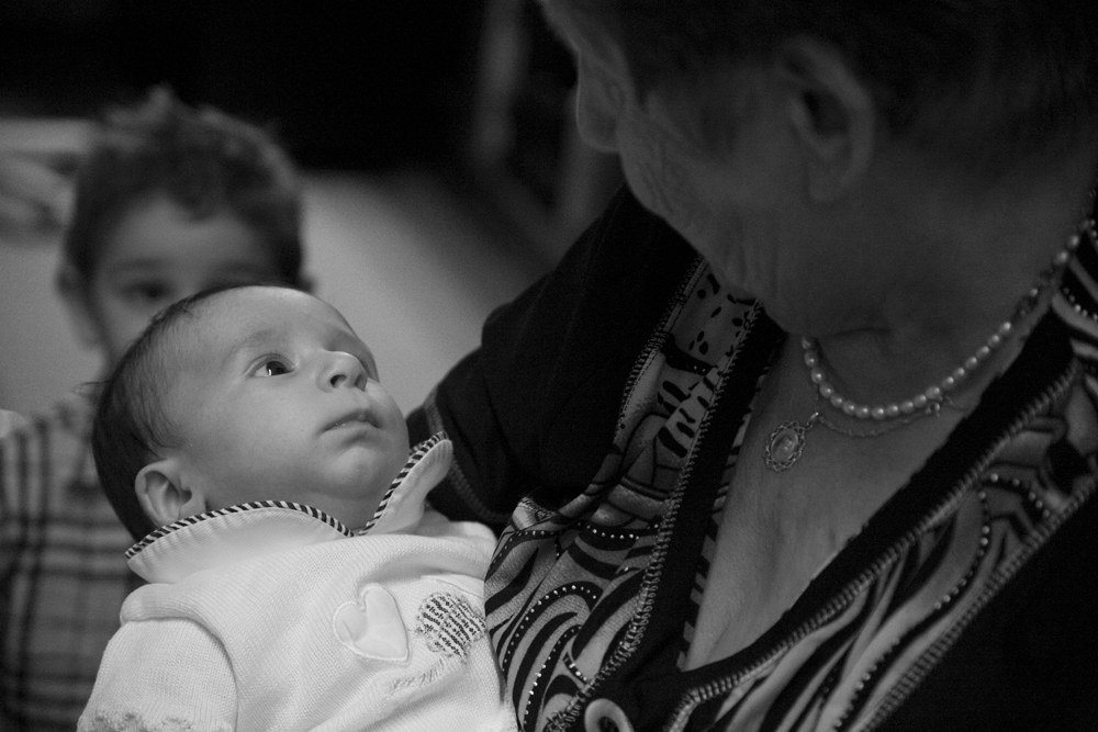 Buona la messa a fuoco sul neonato e ancor meglio lo sfuocato sul secondo bambino, ma perchè farli sovraporre?