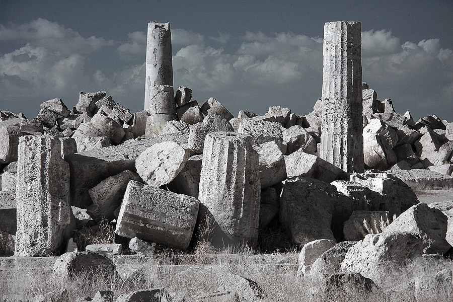 mi piace la composizone di queste antiche pietre ed il loro tenue colore che si staglia sul cielo all'orizzonte con magnifiche nuvole. potrebbe starci benissimo anche un bn