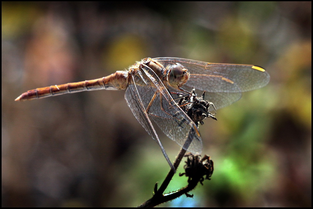 Franco se ti mettevi più parallelo alla libellula ti veniva a fuoco anche la coda. Maf migliorabile, ci manca molto poco. Perchè non usare il treppiede ? Lo sfondo sembra la tavolozza di un pittore, mi piace.