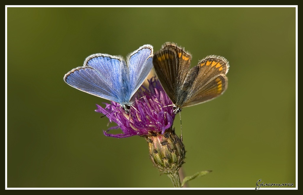 Non la definirei la strana coppia...ma proprio la coppia, visto che si tratta di esemplari della stessa specie ma di sesso opposto! mi piace molto la maf e la pdc è buona, secondo me è il taglio che stona, la vedrei meglio in un taglio verticale con più stelo del fiore! Wink