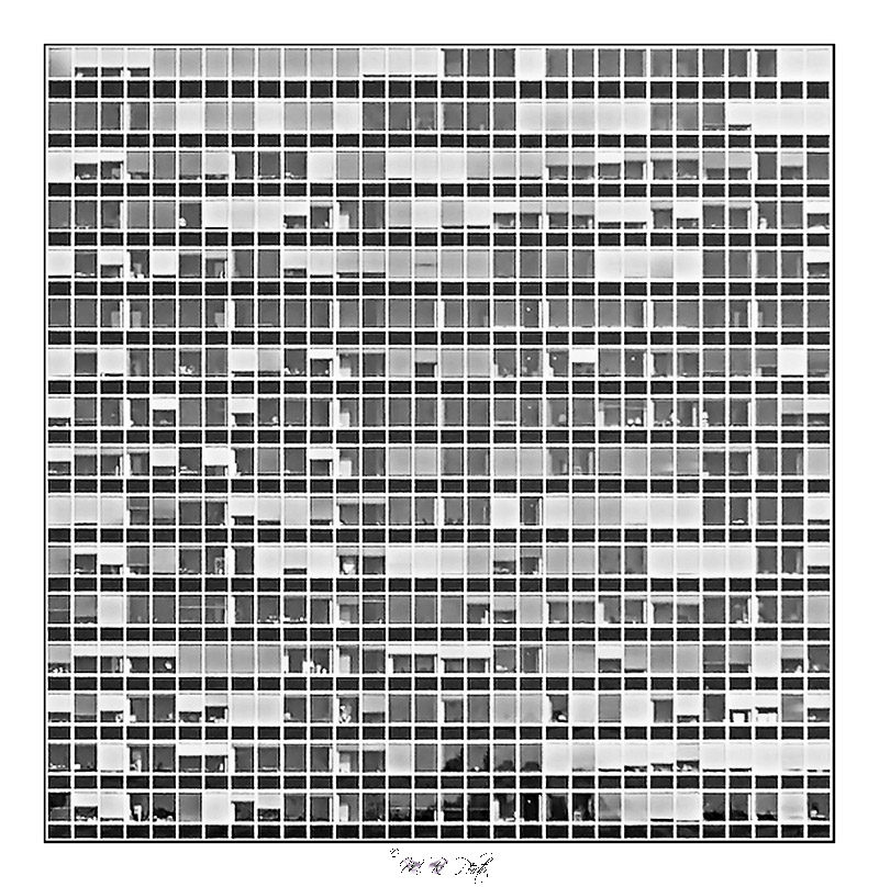 L'immagine è ben giocata sulla ripetizione ossessiva dell'elemento quadrato.. ma pecca un po' troppo per nitidezza e chiarezza di immagine..