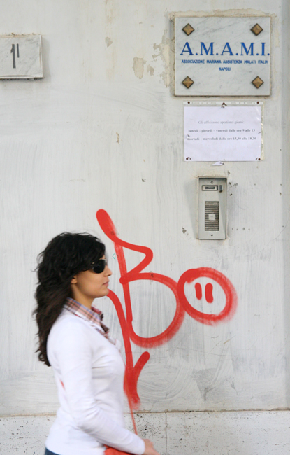 La scritta rossa disturba abbastanza la lettura compromettendo quella che era la (buona) idea originale. Anche il soggetto mosso non è un elemento positivo: proprio per la centralità che viene ad assumere avrebbe dovuto essere molto nitido. Ci sono infine alcuni difettucci "di contorno": il bianco-su-grigiochiaro (meglio qualcosa che stacchi) e il numero civico tagliato.
